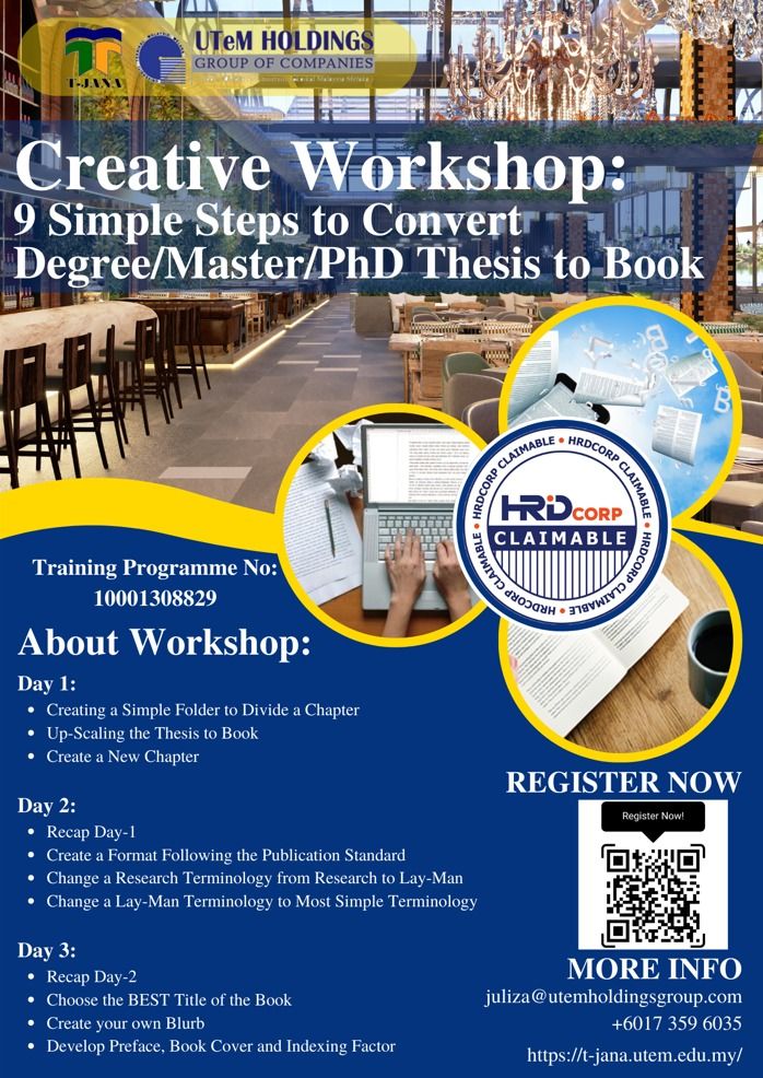 CREATIVE WORKSHOP : SIMPLE STEPS TO CONVERT DEGREE/MASTER/PHD THESIS TO BOOK