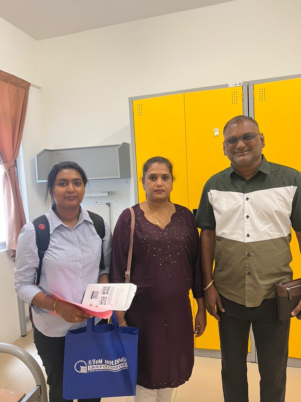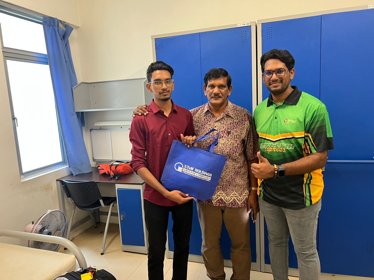 Bersama-sama pelajar adalah bapa dan abang kepada Kumaresan A/L Muthiah. Beliau merupakan pelajar Fakulti Teknologi & Kejuruteraan Mekanikal (FTKM) yang telah berjaya mendaftar masuk di dalam program Laluan Terbuka UTeM pengambilan sesi 2023/2024.